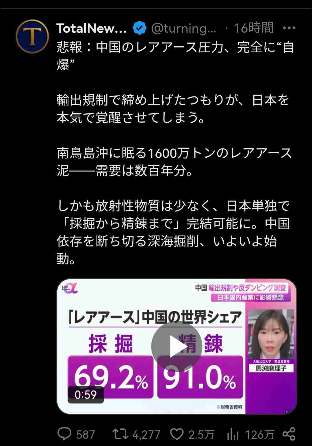 左翼はレアアースは大切で高市早苗さんはいらないとなってるね