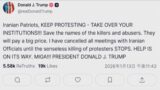 イラン反政府デモに「抗議を続けて国家機関を乗っ取れ」トランプ大統領が呼びかけ イラン当局者との会合中止も表明