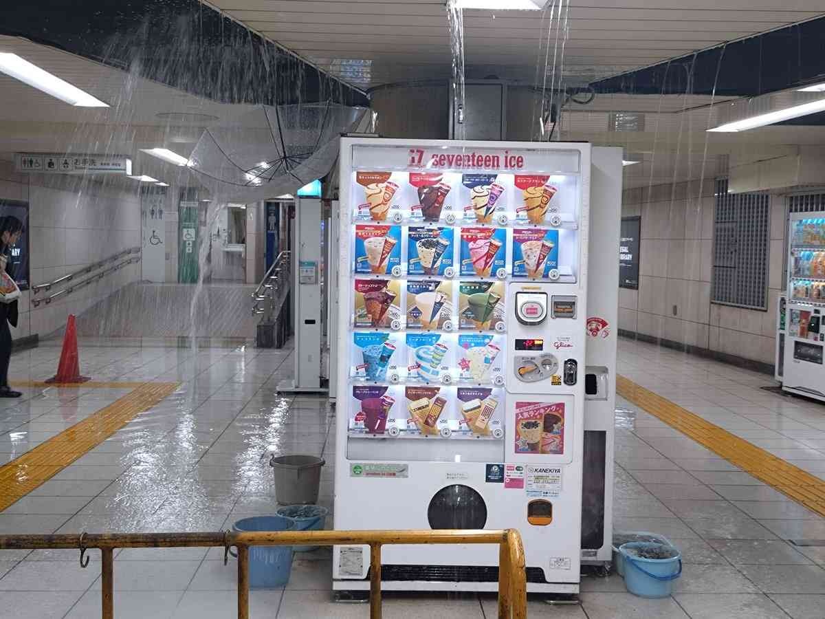 14日18時頃、東京都千代田区の東京メトロ・霞ケ関駅構内で、地下通路の天井から大量の水が噴き出すトラブルがあった。