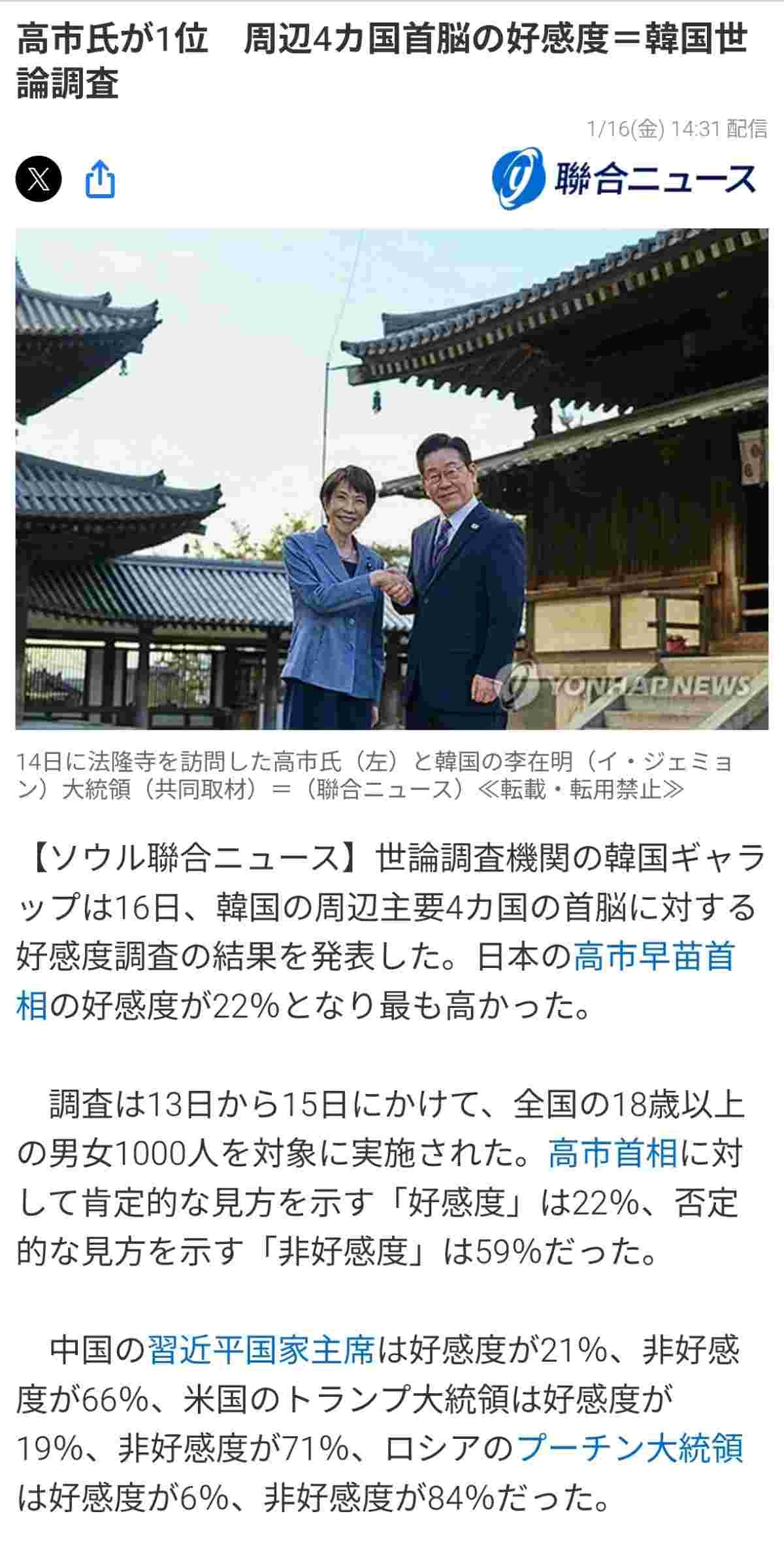 高市トランプ習プーチンとかちょっと韓国に同情するわ