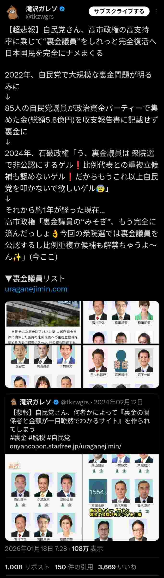 自民🏺は桁外れの企業献金、裏金、統一🏺パワーで政治家失格輩まで当選させ民主主義を歪めてきたわけ