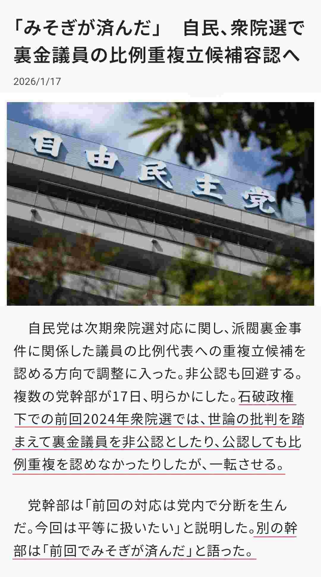【超悲報】自民党さん、高市政権の高支持率に乗じて”裏金議員”をしれっと完全復活へ 日本国民を完全にナメまくるwww