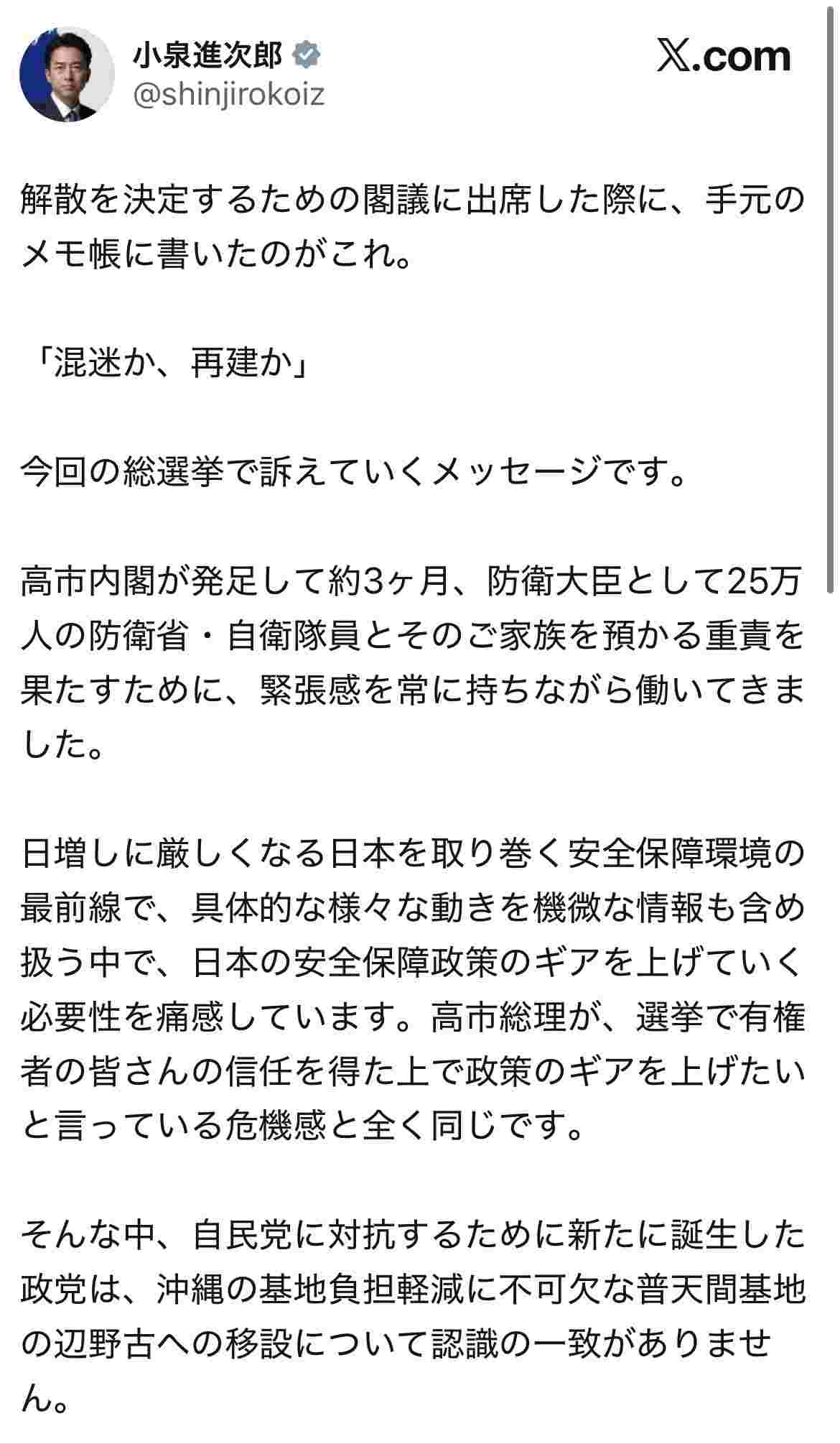 総裁選のときから高市よりは進次郎の方がマシと言い続けてきて