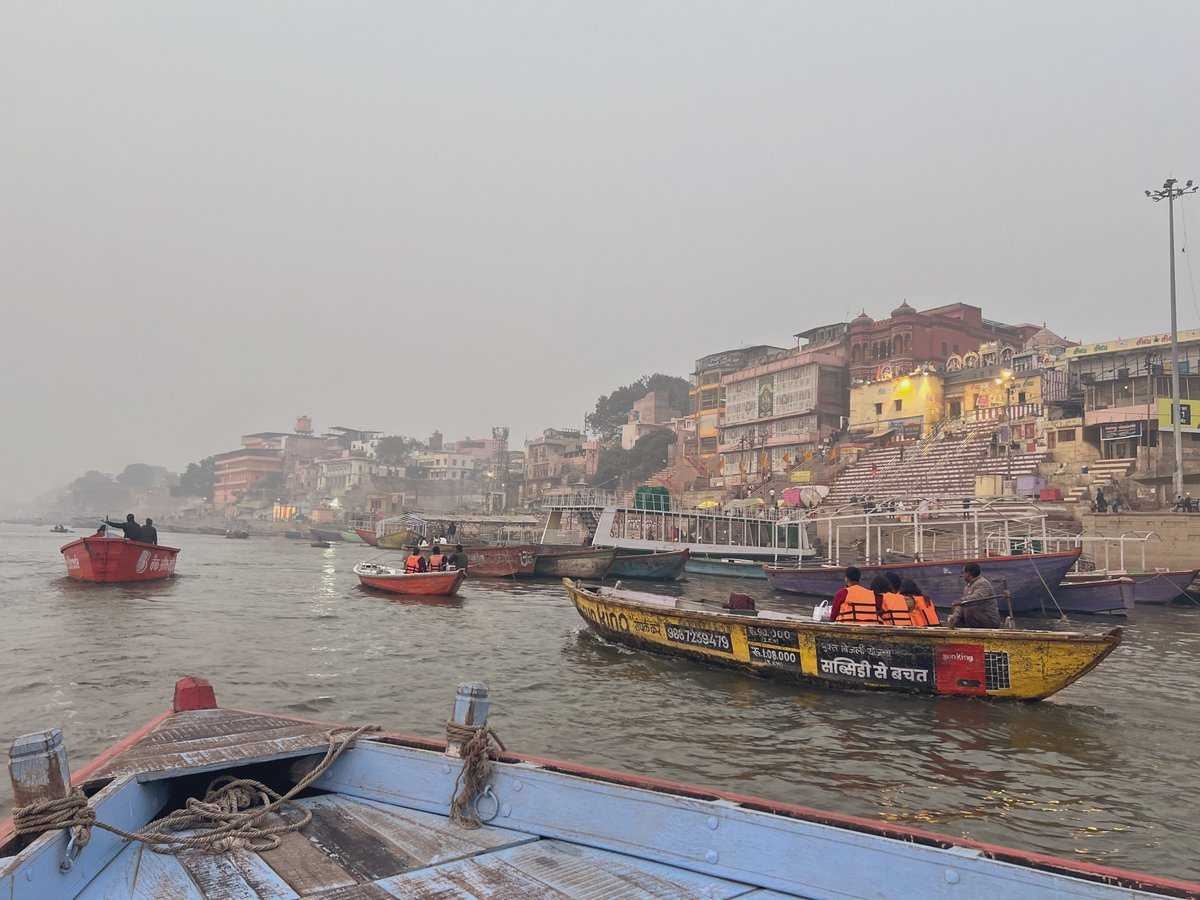 ポンポン船を貸し切って早朝のガンジス川を潜望。