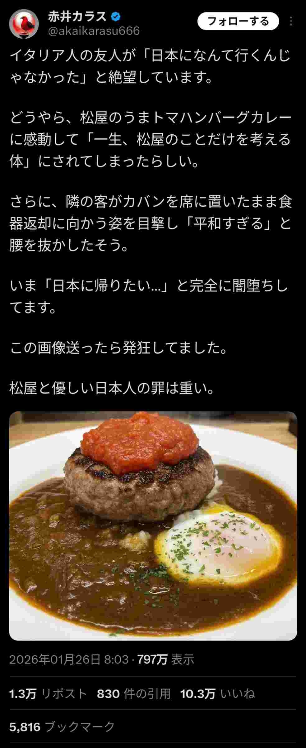 美食の国イタリア人が松屋の味に感動するわけないだろ…