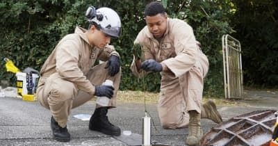 マンホールから白い泡、宜野湾市 米軍普天間飛行場近く