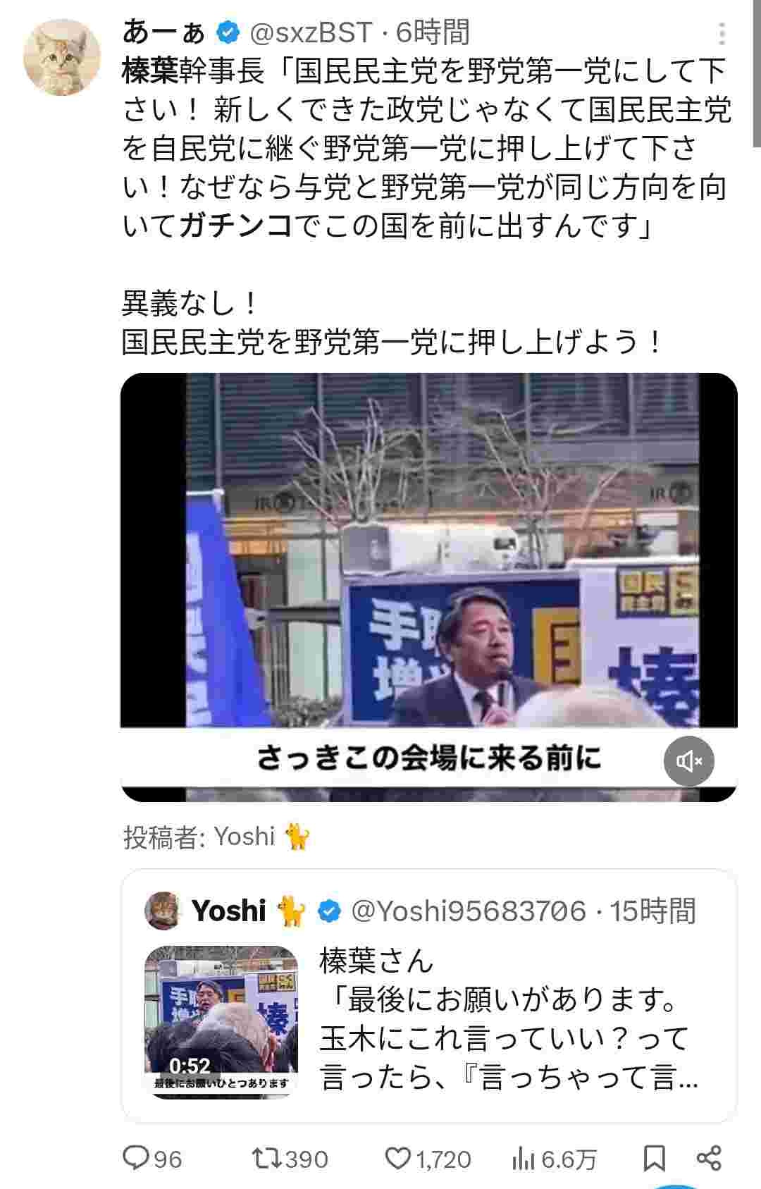 国民民主「我々を野党第一党に!自民党と野党第一党が同じ方向を向いて、この国を前に押し出すんです!!」