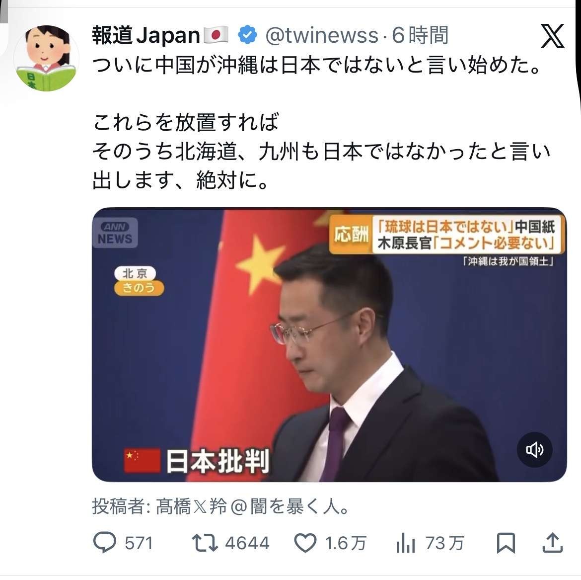 日本も沖縄や北海道を返さねばなりませんぞ奪ったのだから