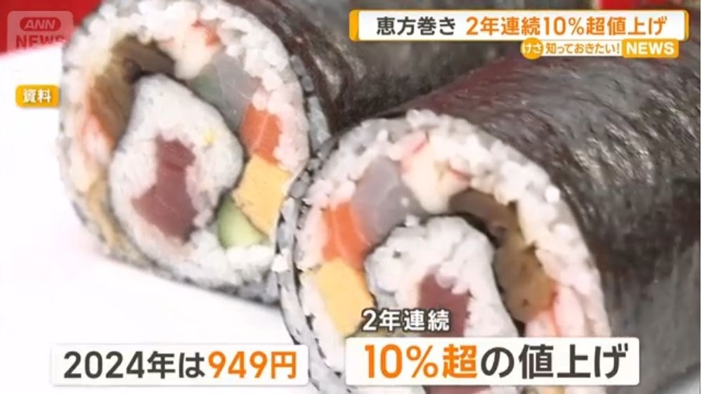 恵方巻きの平均価格1173円 2年連続で10%超の値上げ
