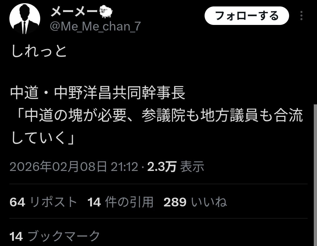 ここまで大敗して野田が中道合併とかふざけた事言うなら今後一切中道には入れねぇからな