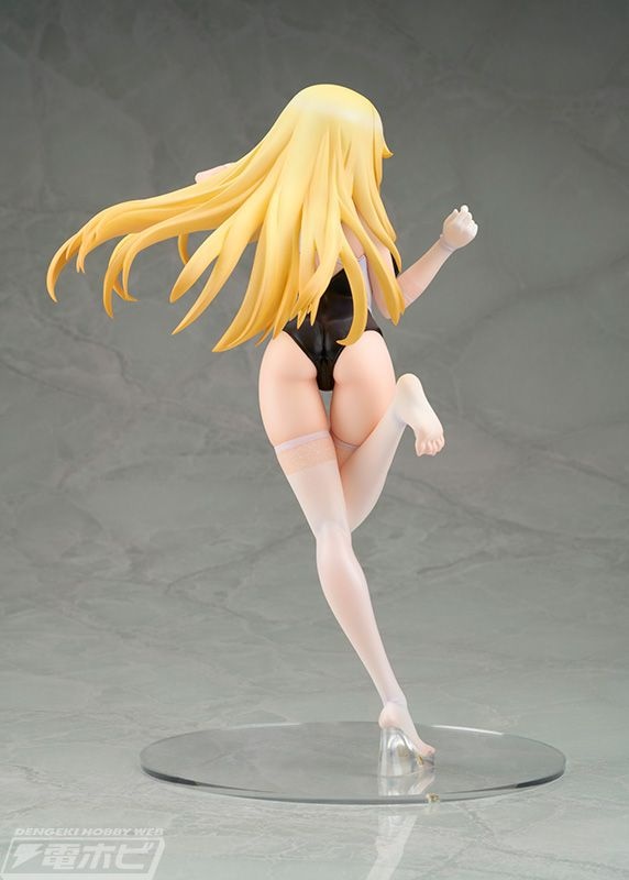 ツヤ感のある黒バニースーツに身を包み立体化された食蜂操祈。後ろを振り向きながらポーズをビシッと決めている姿が彼女らしさを演出。網タイツは布製のものを使用しており、フィギュアの美しさがさらにアップしていますね。