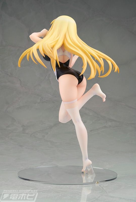 常盤台中学の指定水着姿で立体化されている食蜂操祈。中学生らしからぬ抜群のプロポーションが際立つ仕上がりとなっています。ツヤのあるダークトーンの水着と、淡いグラデーションで彩色された肌の対比もステキですね。また、特徴的なニーソックスやグローブは、レース部の細密な模様や、生地の薄さを想起させる巧みな「透け」表現が見どころです!