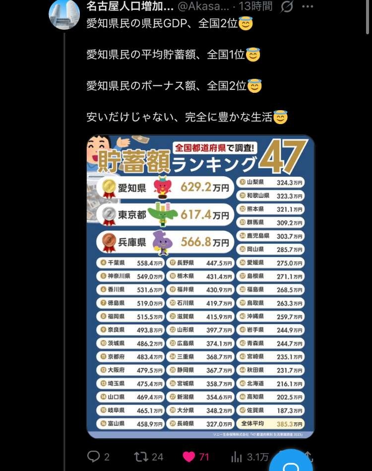 この名古屋人口増加うんたらってお前のアカウントだろ