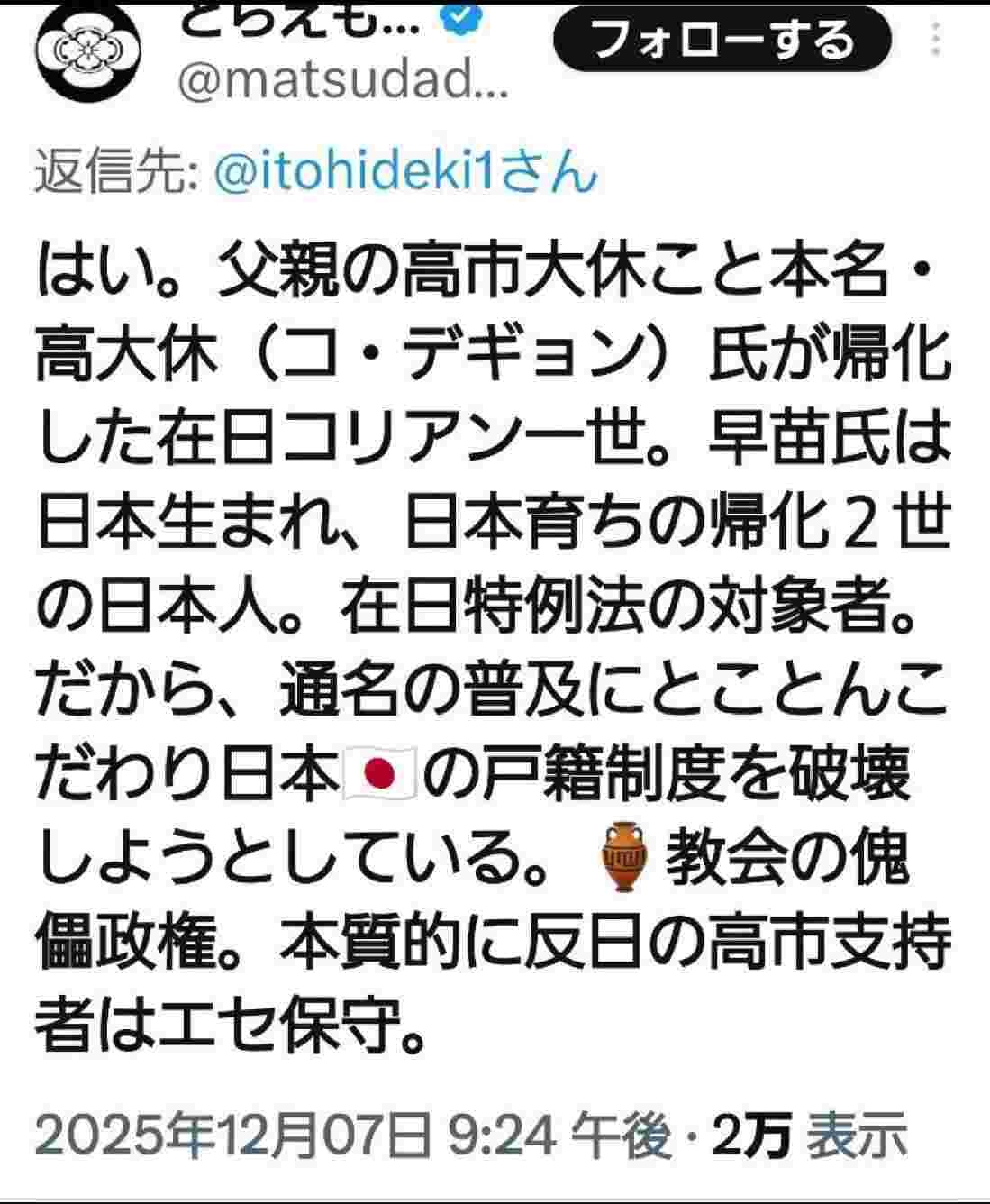 高市天皇説とか気持ち悪い事言ってたもんなそりゃ通名でどうとでもなる