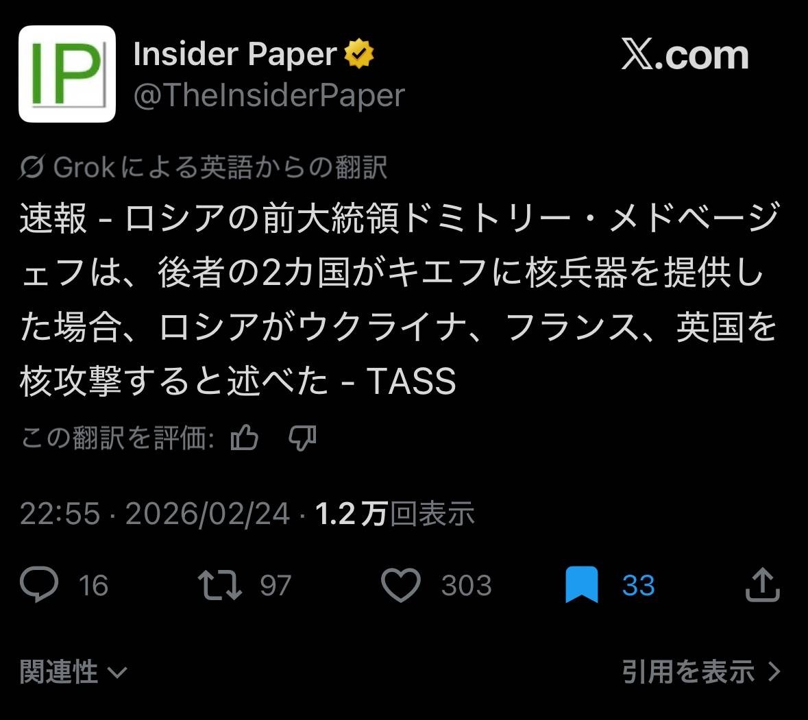 ウクライナに核が渡る可能性が大きいからトランプは早々に手を引いたのかもしれんな