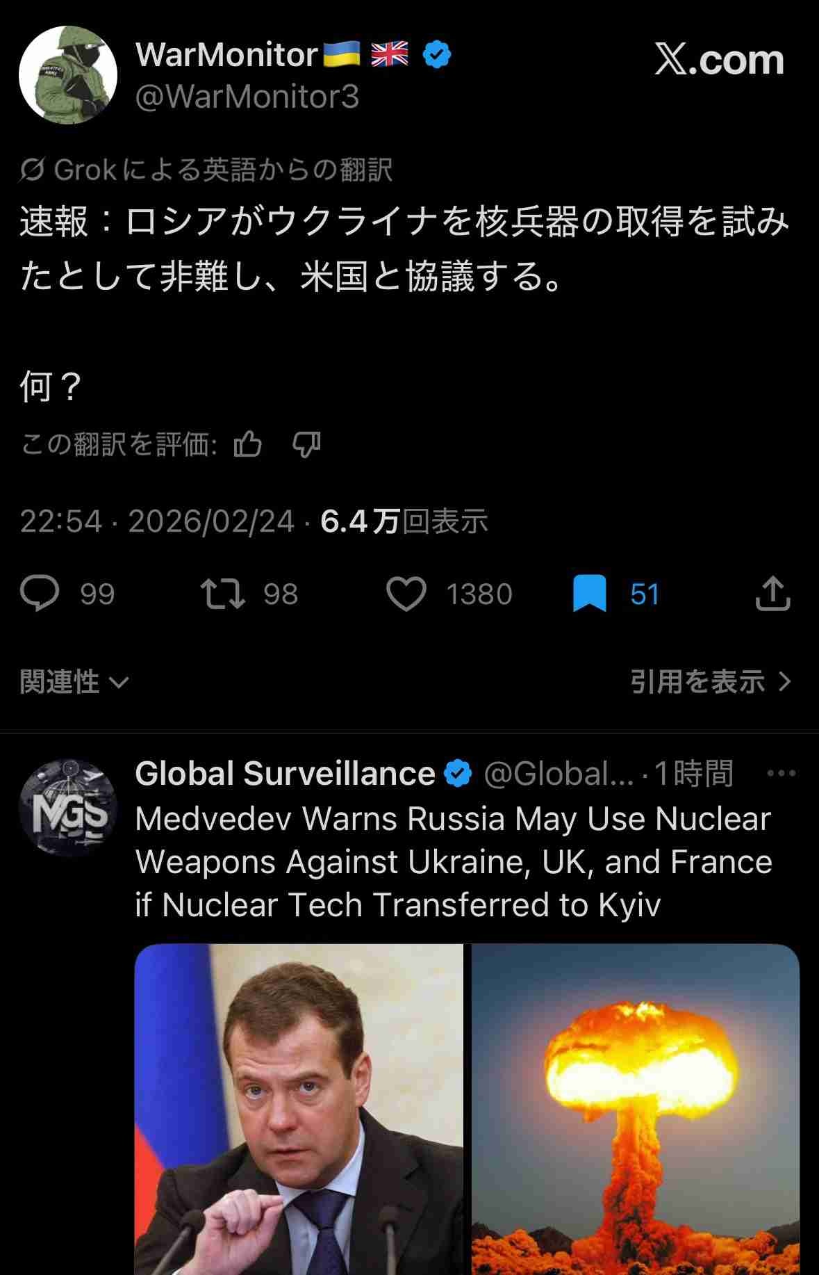メドベージェフなら平常運転じゃねえか