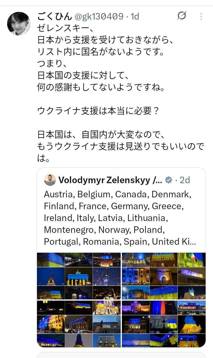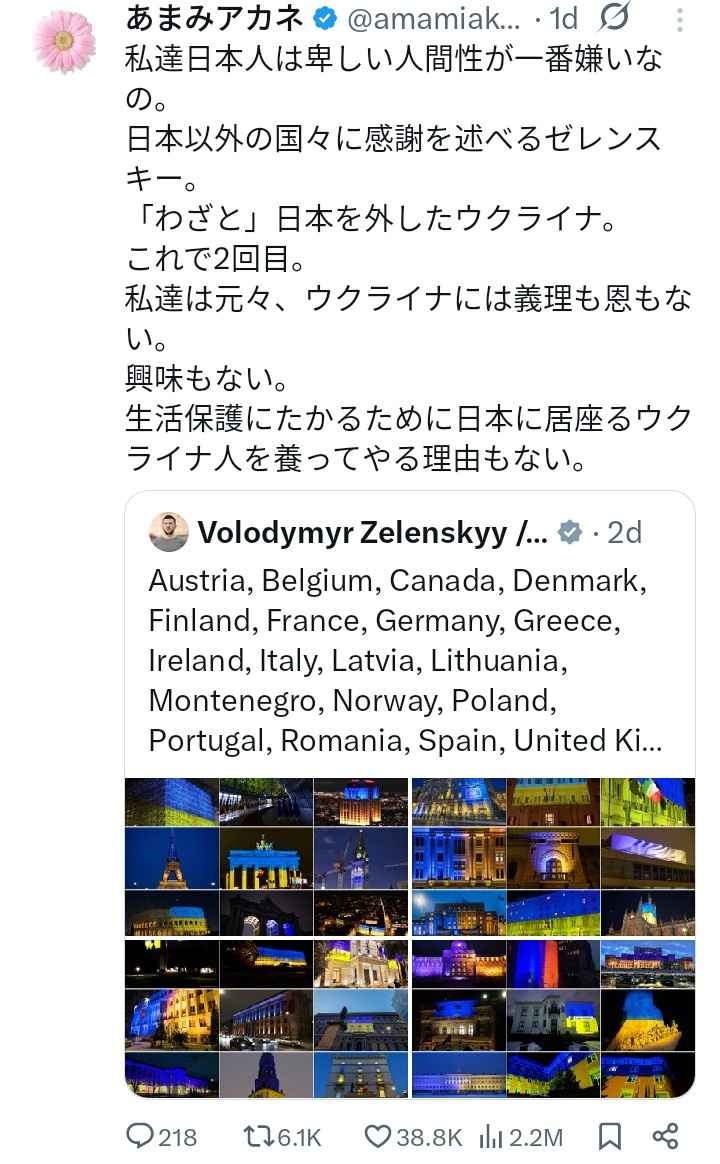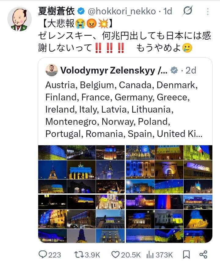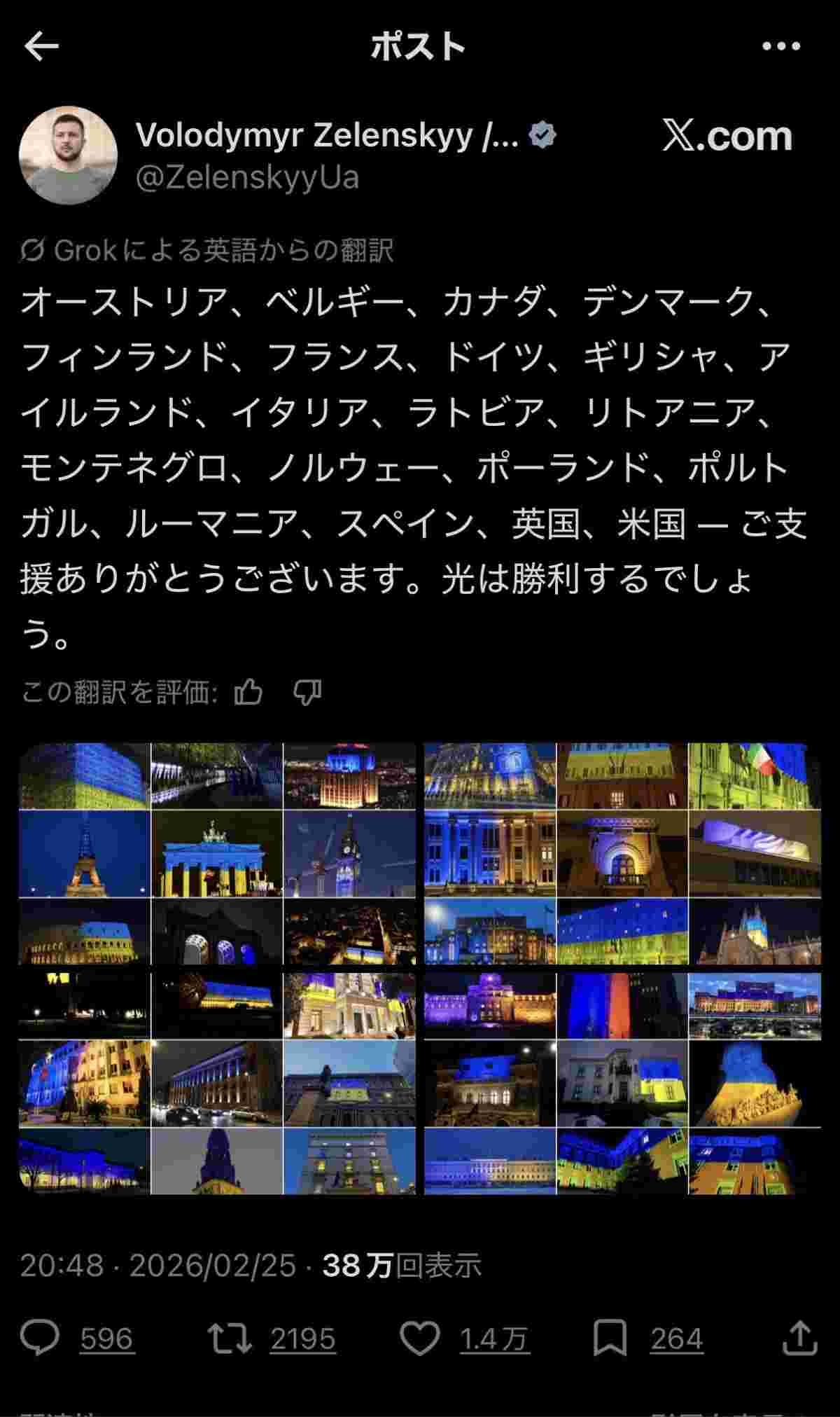 ゼレンスキー日本に感謝 Volodymyr Zelenskyy / Володимир Зеленський (@ZelenskyyUa) on XThank you to Japan – our great supporter and a true leader in protecting life, both in its region and globally. From the...x.com感謝してもらえてよかったね