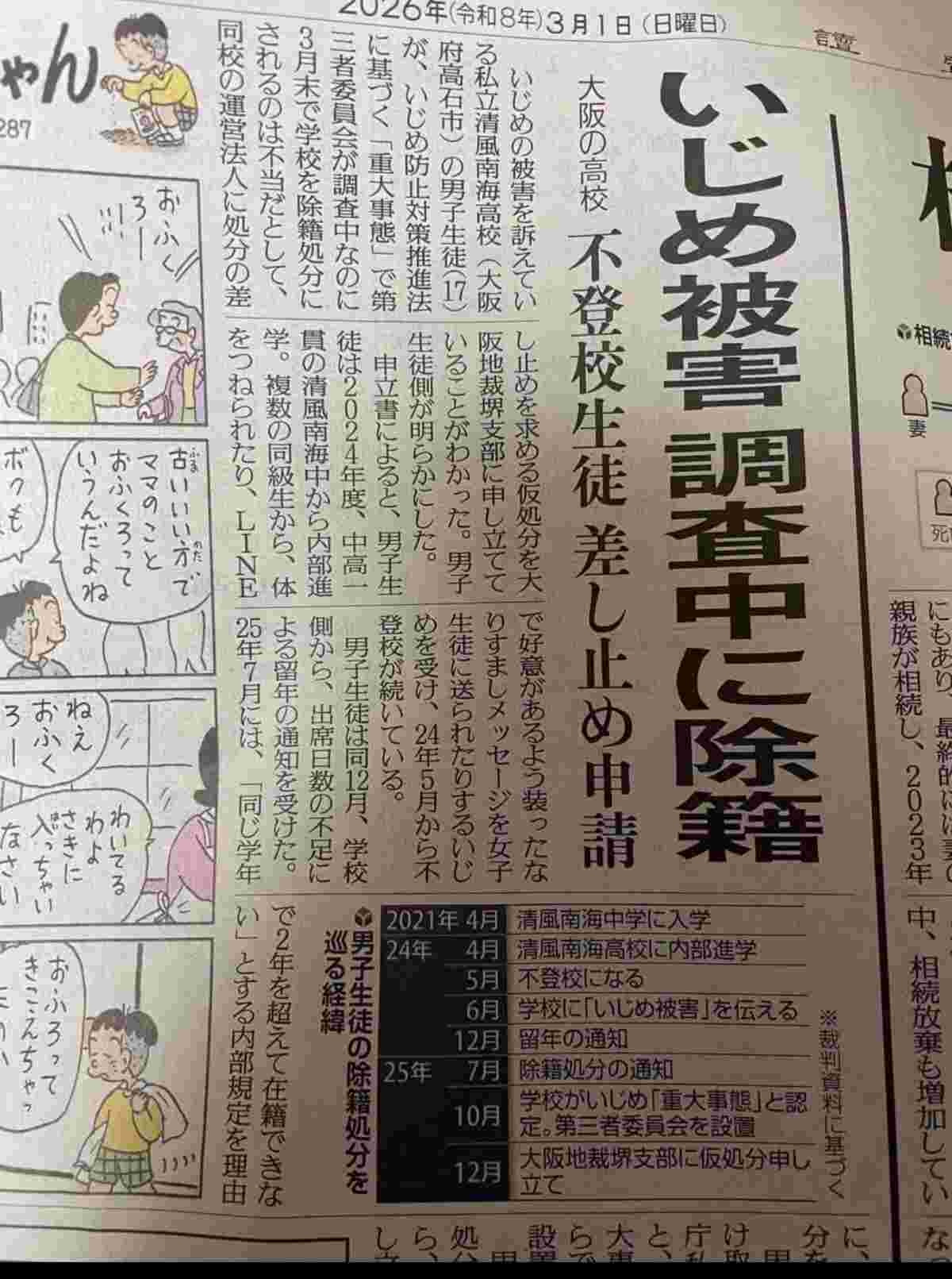 不登校重なり過ぎての除籍か…