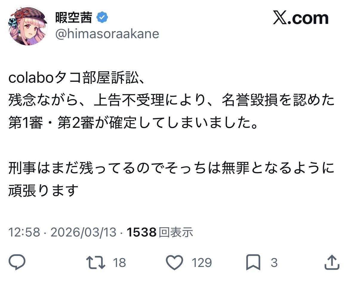 暇空敗訴