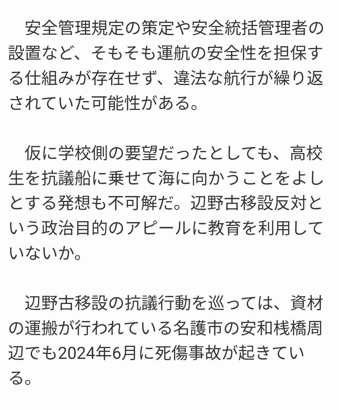 船の安全性と平和学習のあり方は別問題だろ・・・