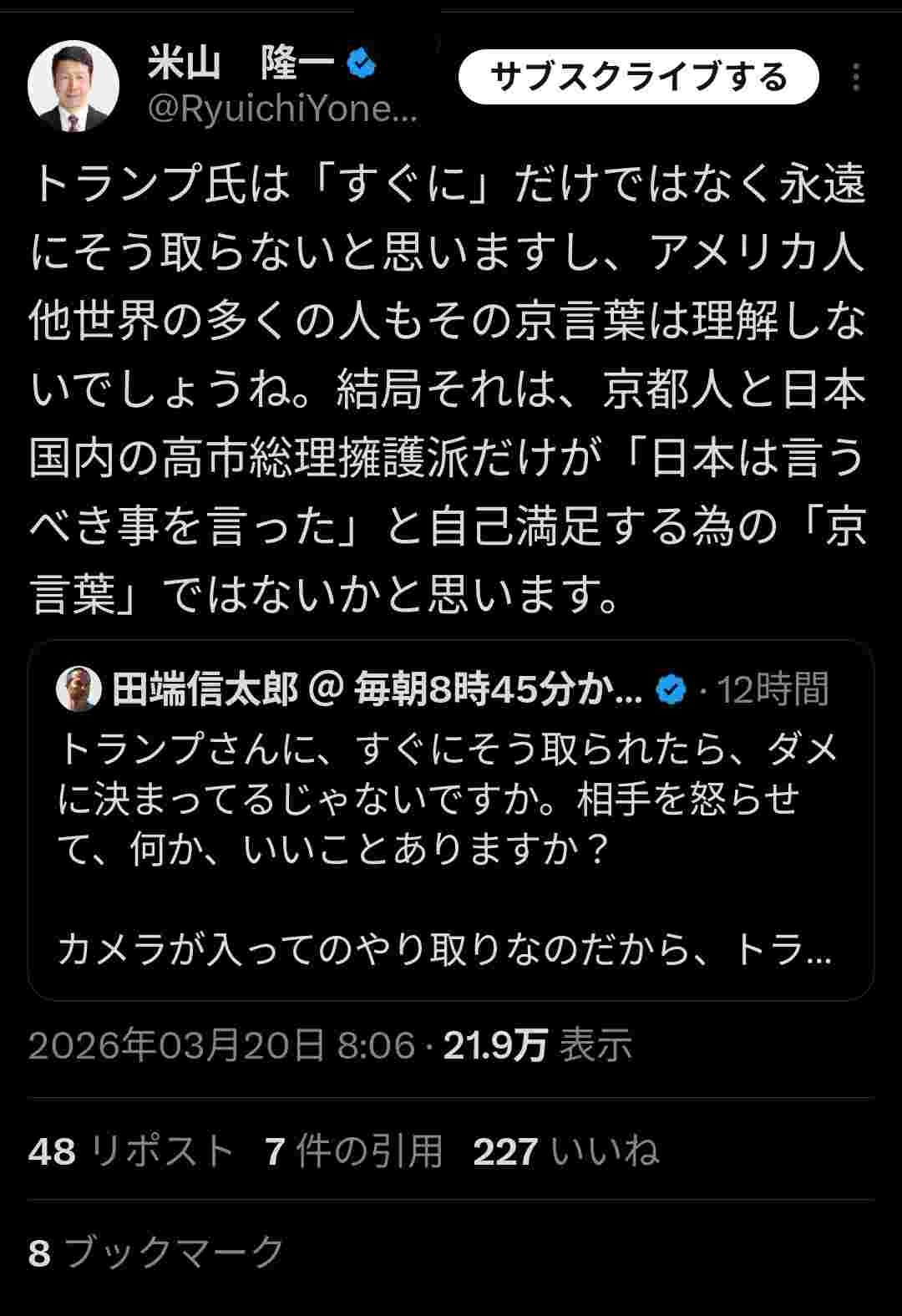 あの発言が皮肉や京言葉だった路線での擁護は草