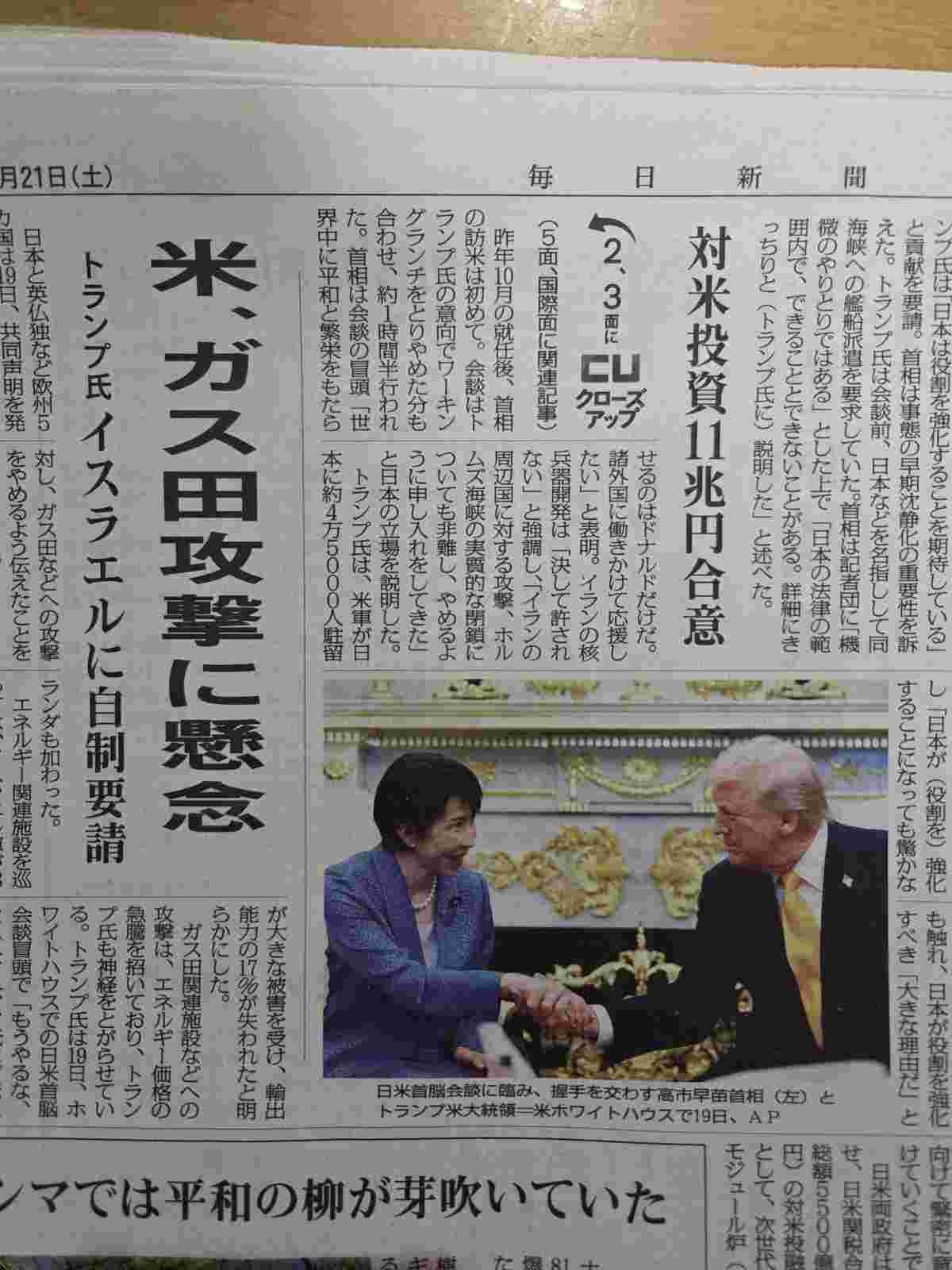 コレを「高市はトランプに停戦を呼びかけた」とか報道するのが国内メディア