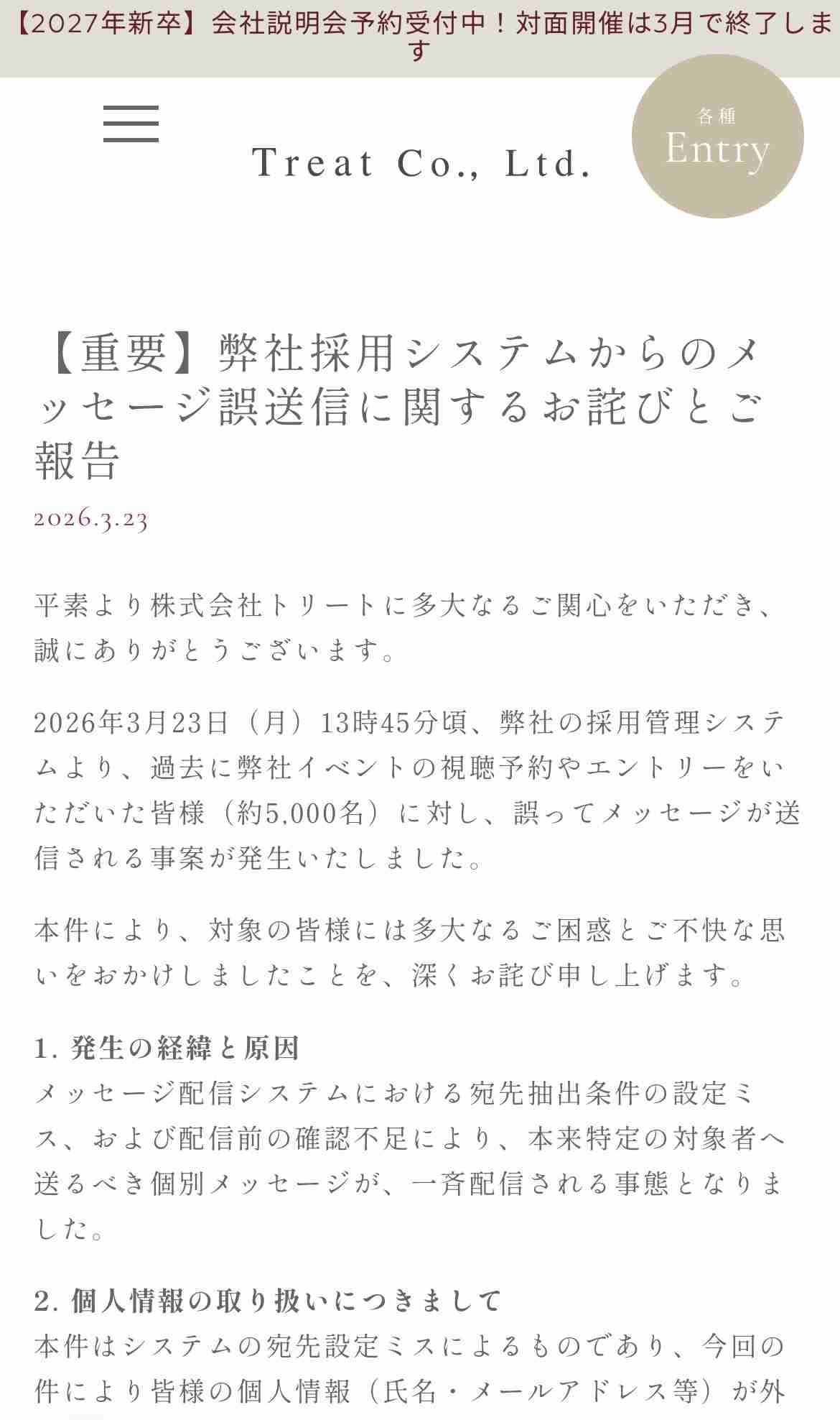 会社HPのリクルートブログの最近記事が>>20
