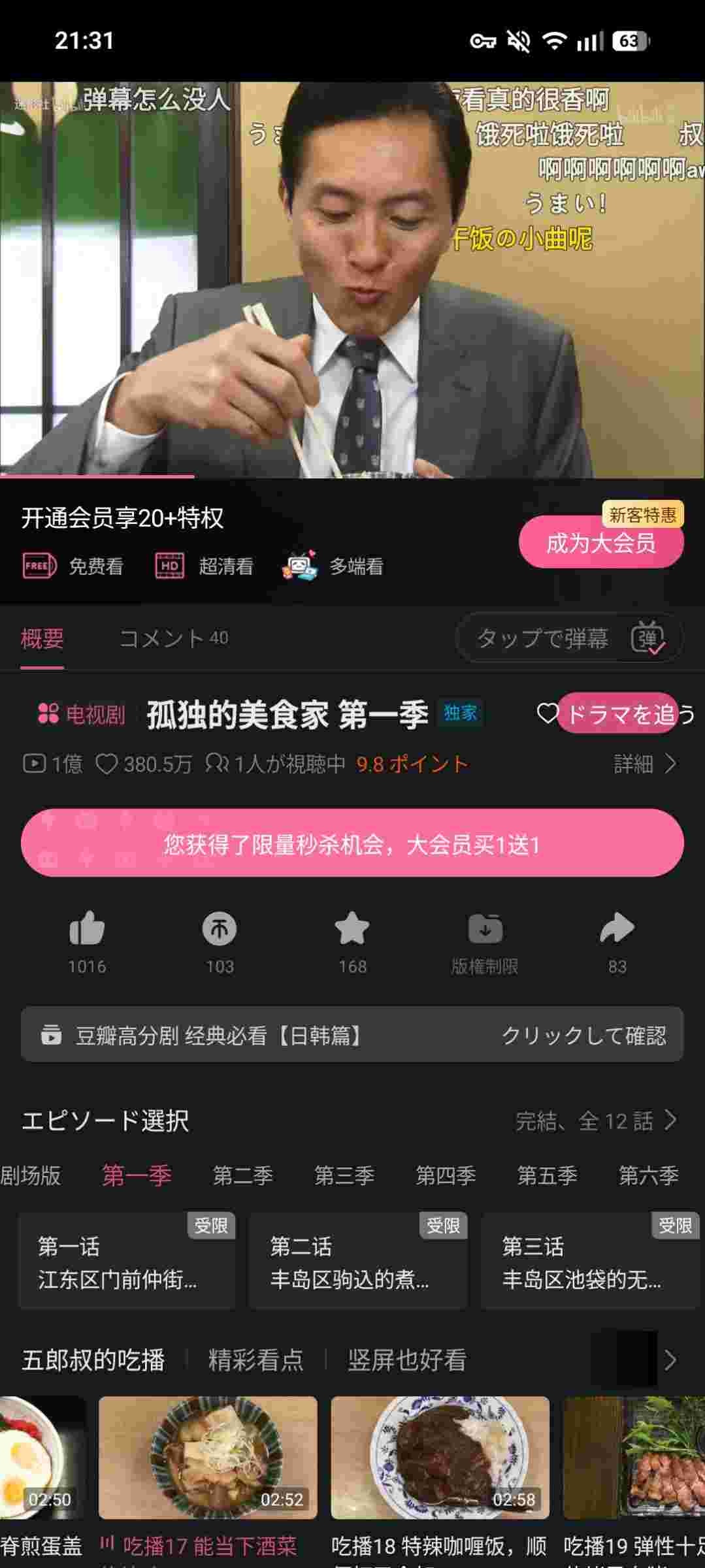女優との過去の恋愛経験もありなハイソサエティーの人物で、そういう人物が庶民の飯を食う話
