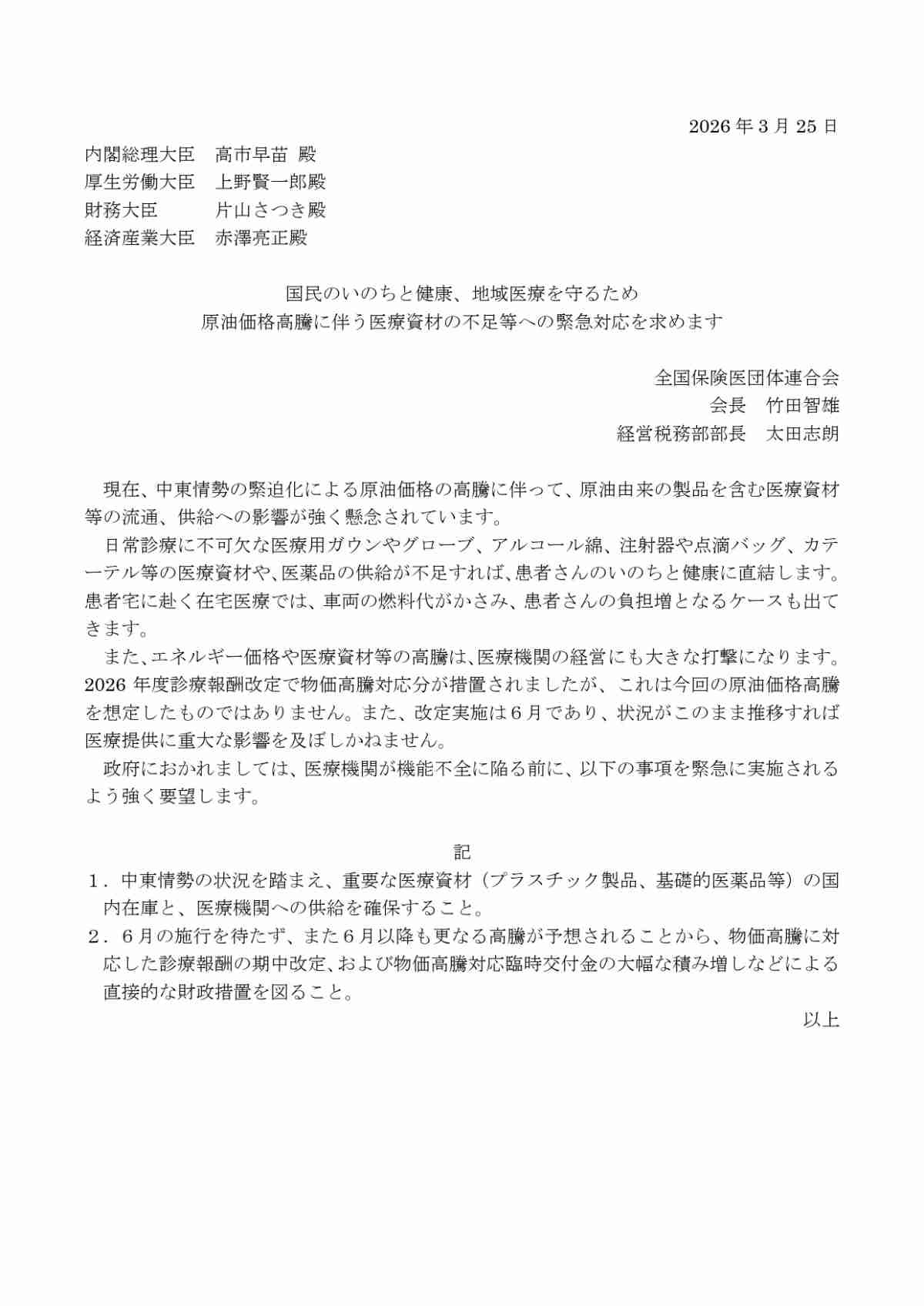 これ病院に補助金出せって話だから無視していいよ