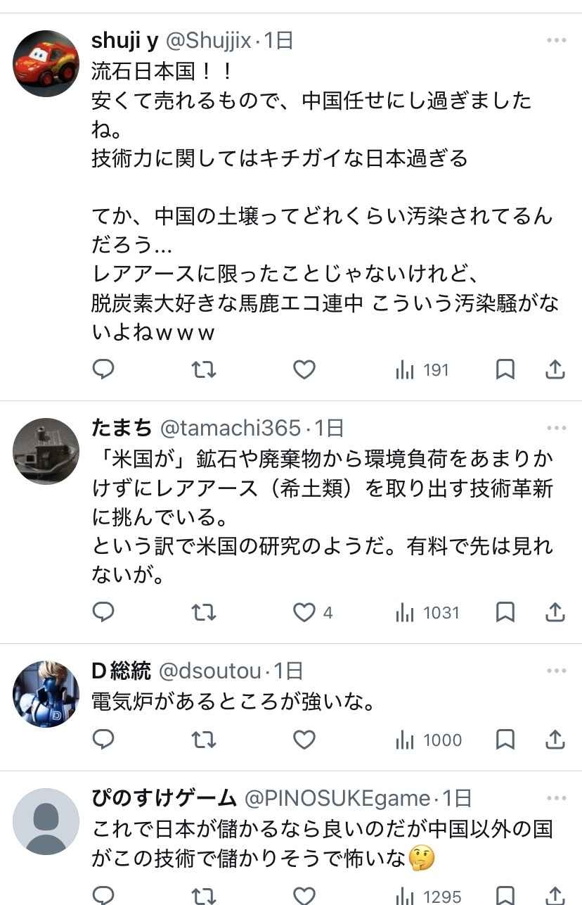 日経「米国がレアアース新技術を開発」→ ネトウヨ「日本すげえ」