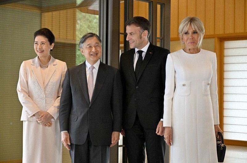 天皇、皇后両陛下がフランスのマクロン大統領夫妻と会見…御所玄関でにこやかに迎えられる