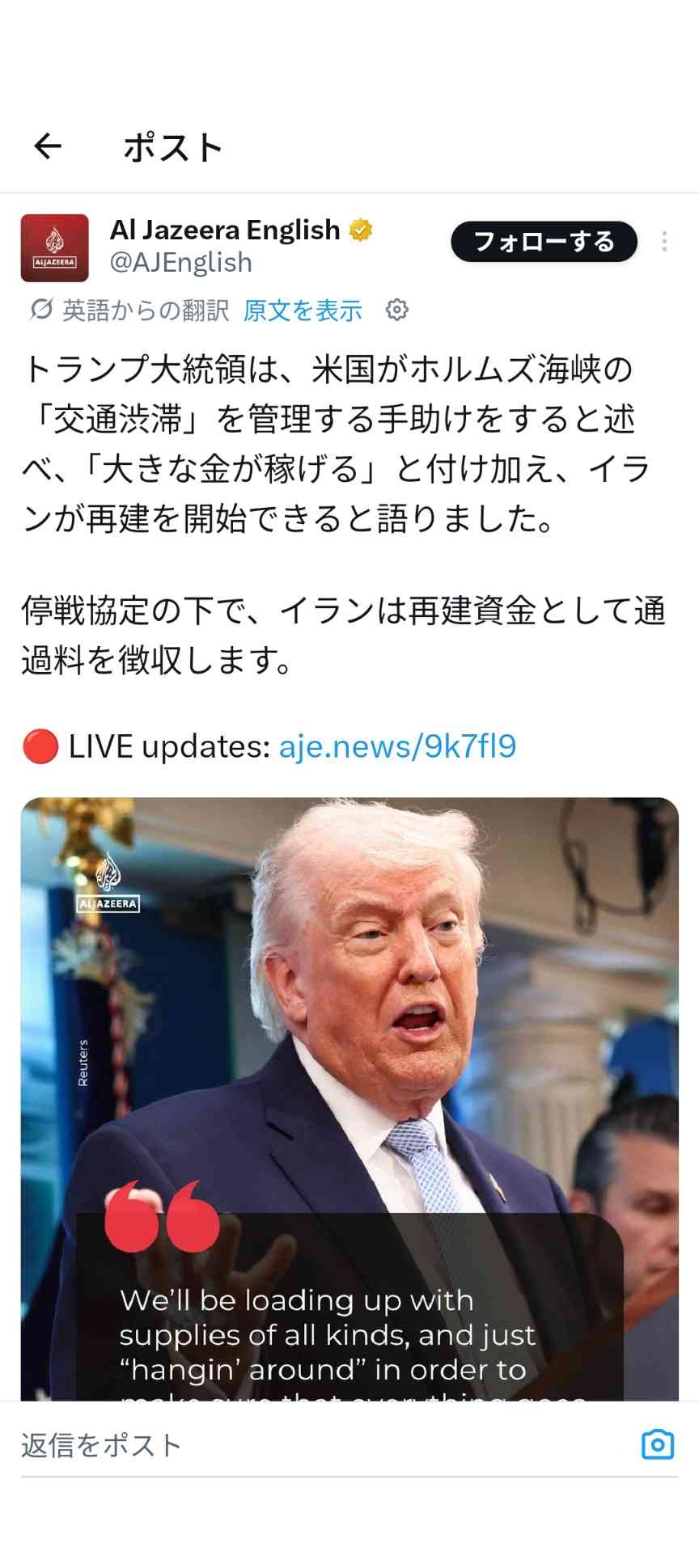 ホルムズ海峡から徴収するってのはトランプ自身も言ってたから