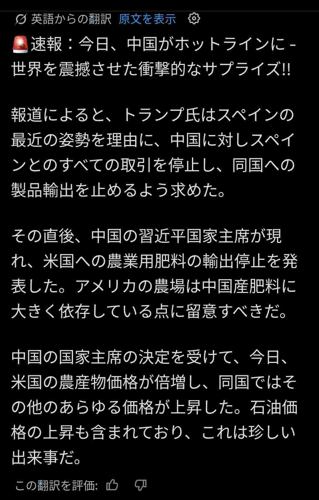 なんでこれ中国父さんが言うこと聞いてスペインと取引やめると思ったんや
