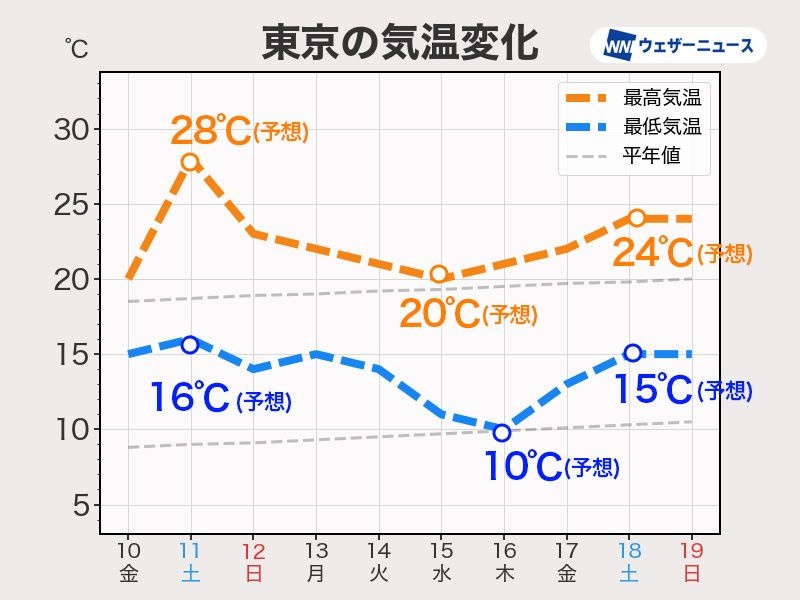 今週末は関東以西で気温上昇 土曜日の東京は最高気温28℃予想 - ウェザーニュース