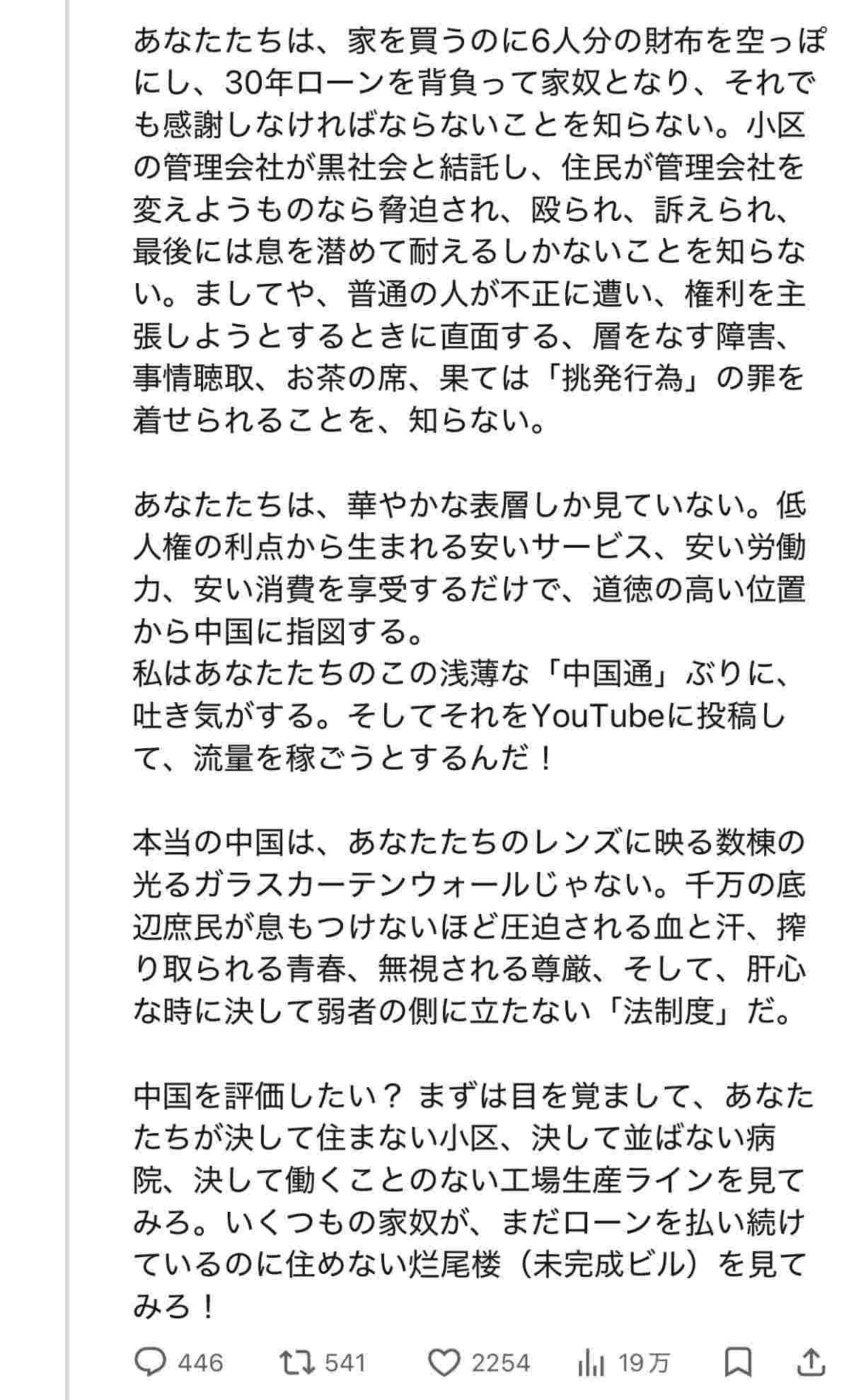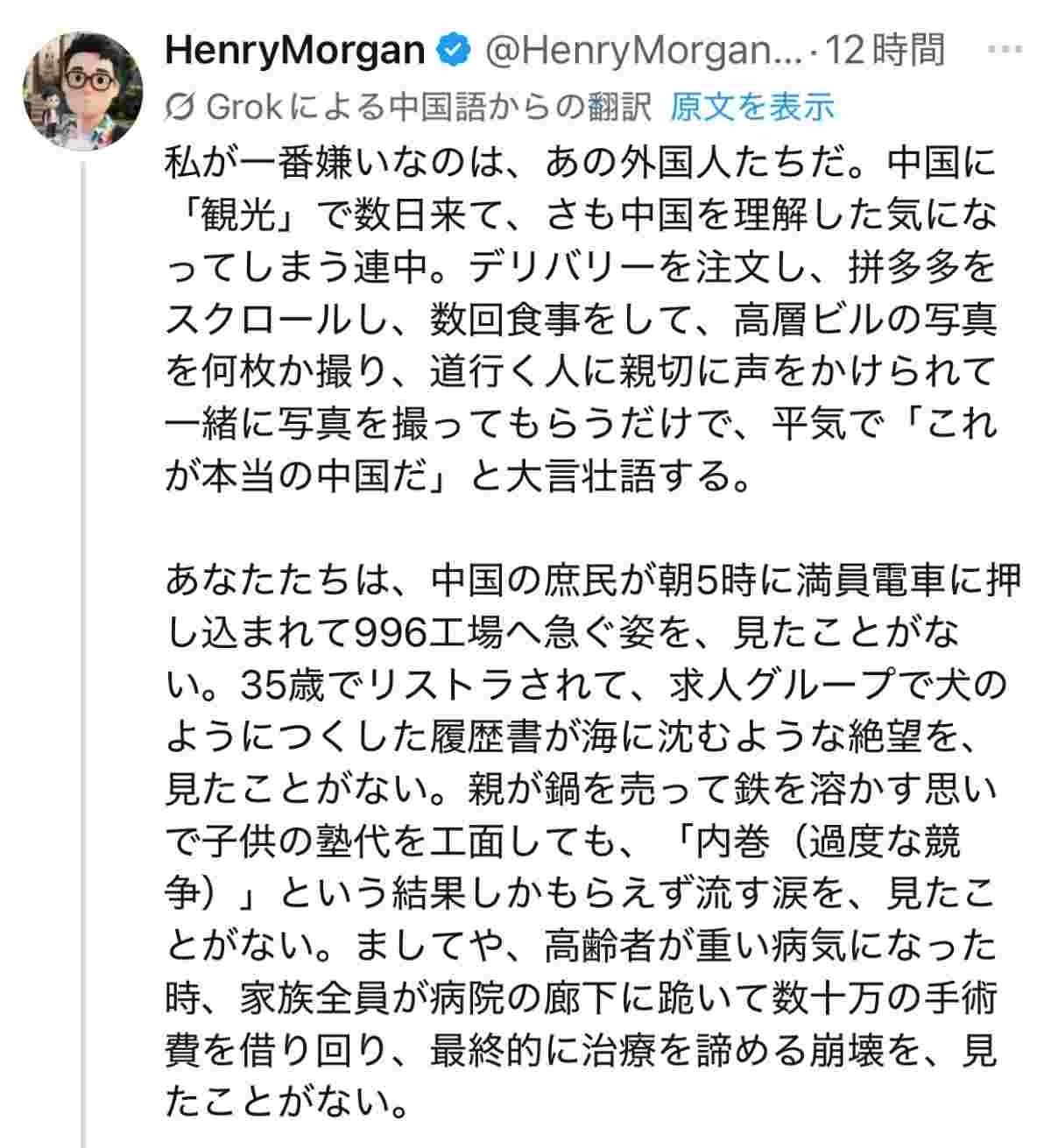 だから目を逸らしていいってことにはならないが、中国ならではの問題とも違うんでとりたてて話さなければってのも違うかな