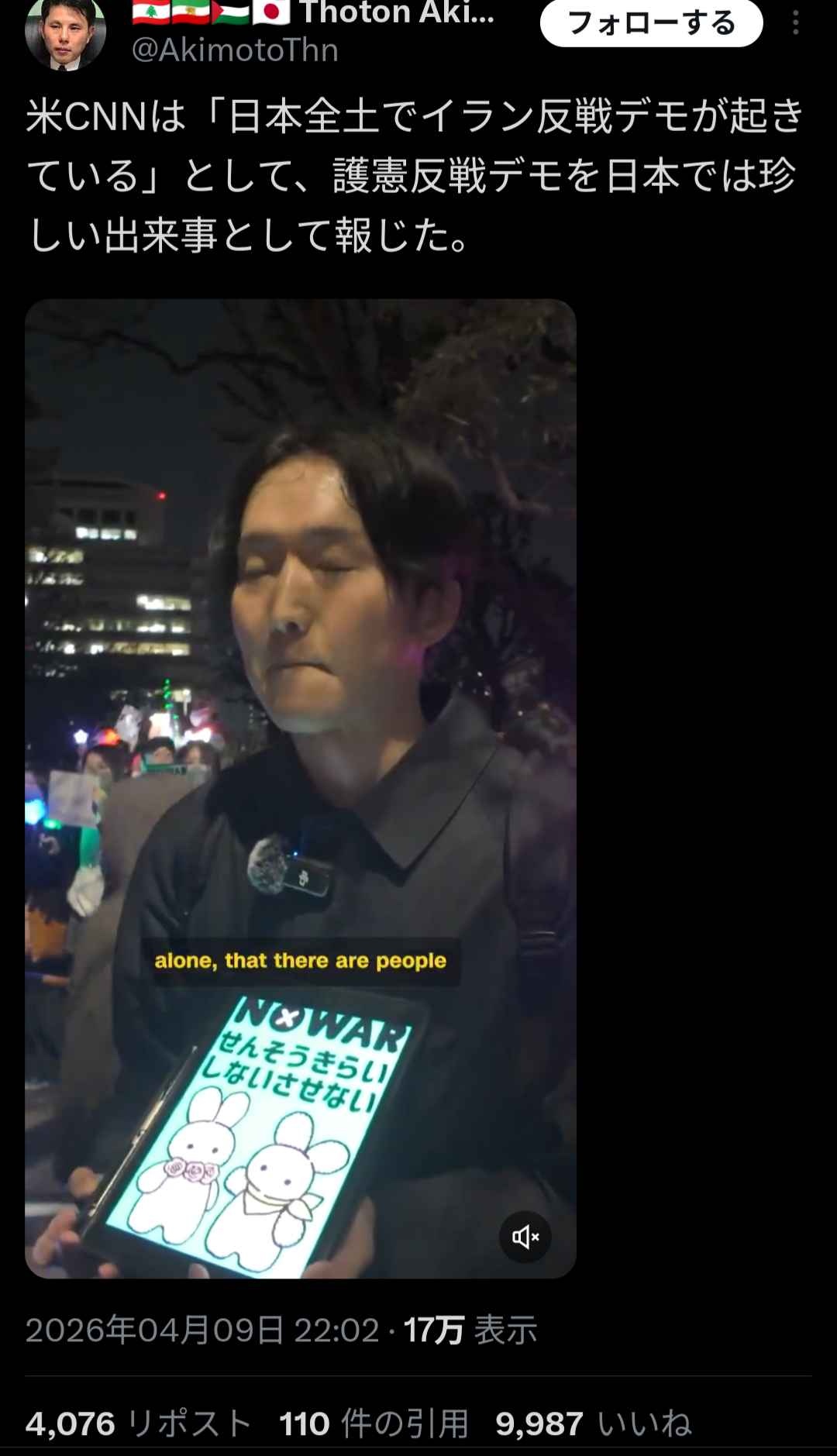 ??「反戦デモ? 政府が国民の意思なんて聞く必要ないから無視無視」