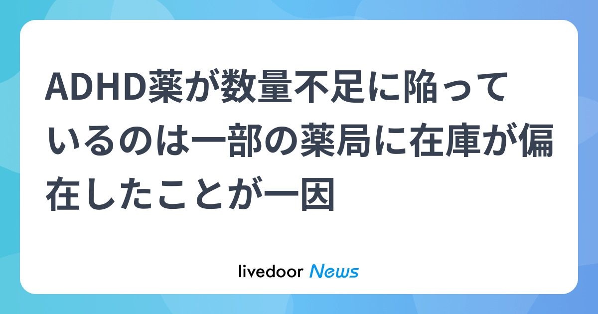 ADHD薬、在庫は偏在 発達障害当事者協会が調査 - ライブドアニュース発達障害当事者協会は15日までに、注意欠如多動症(ADHD)の治療薬「コンサータ」が国内で数量不足に陥っているのは、一部の薬局に在庫が偏在したことが一因だとする調査結果を発表した。成分には覚醒剤と似た作用news.livedoor.com