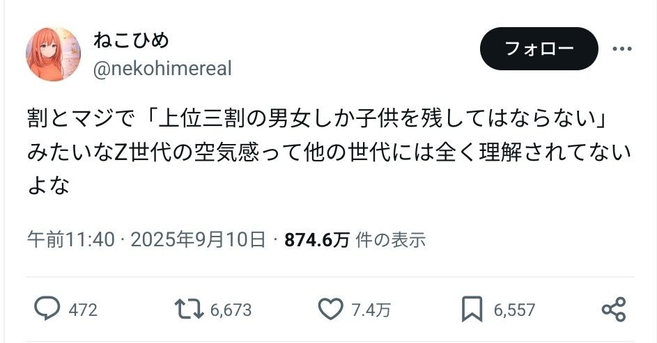 まあ、SNS・マッチングアプリのネイティブ世代だから先鋭化してるのは間違いないだろうけど。