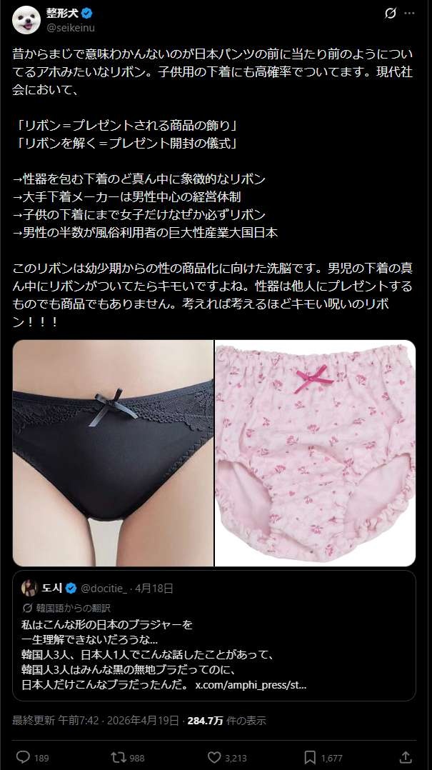 👩「エ口い下着もおっさんがアイデア出して開発してるに決まってる!女性は求めてない!」