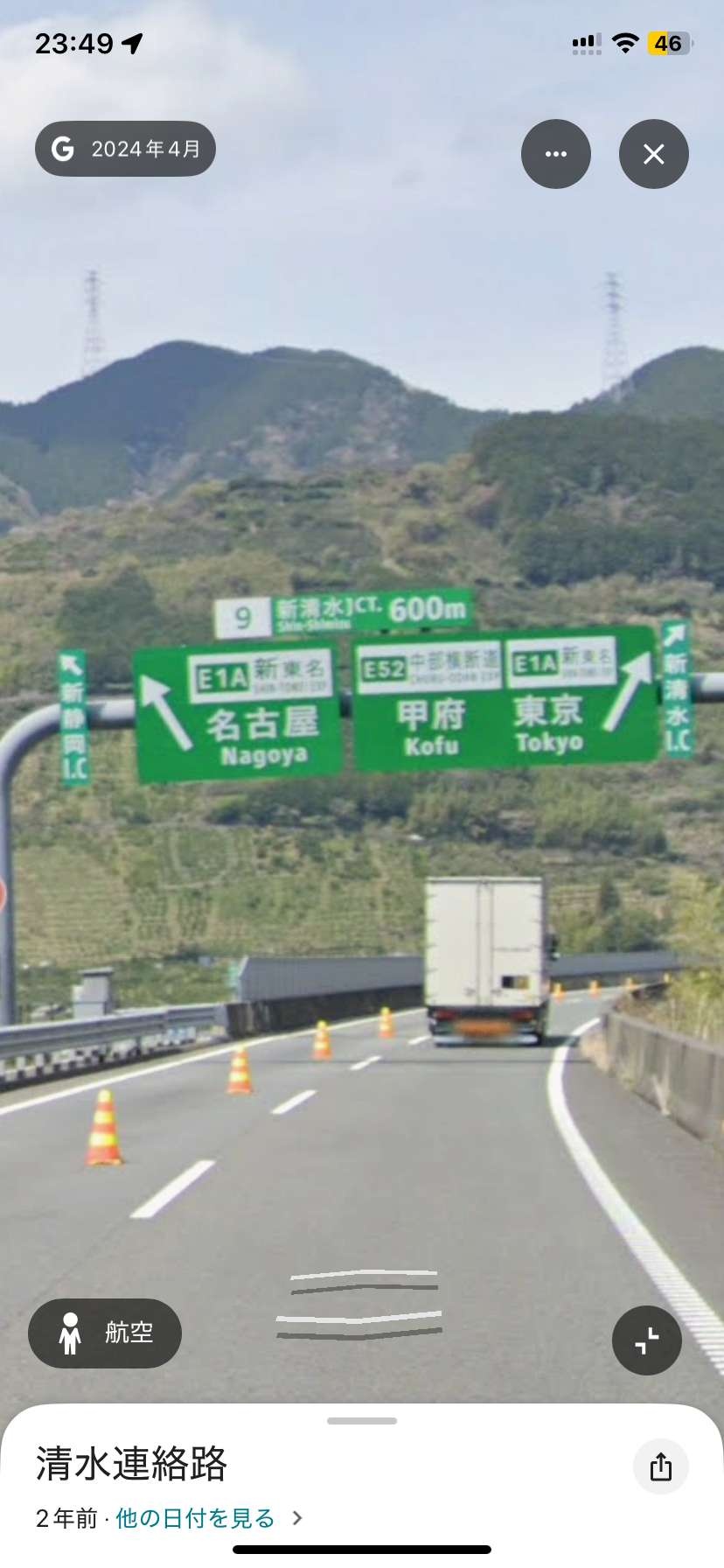隣県の静岡県の県庁所在地の静岡市までの距離が表示されてる