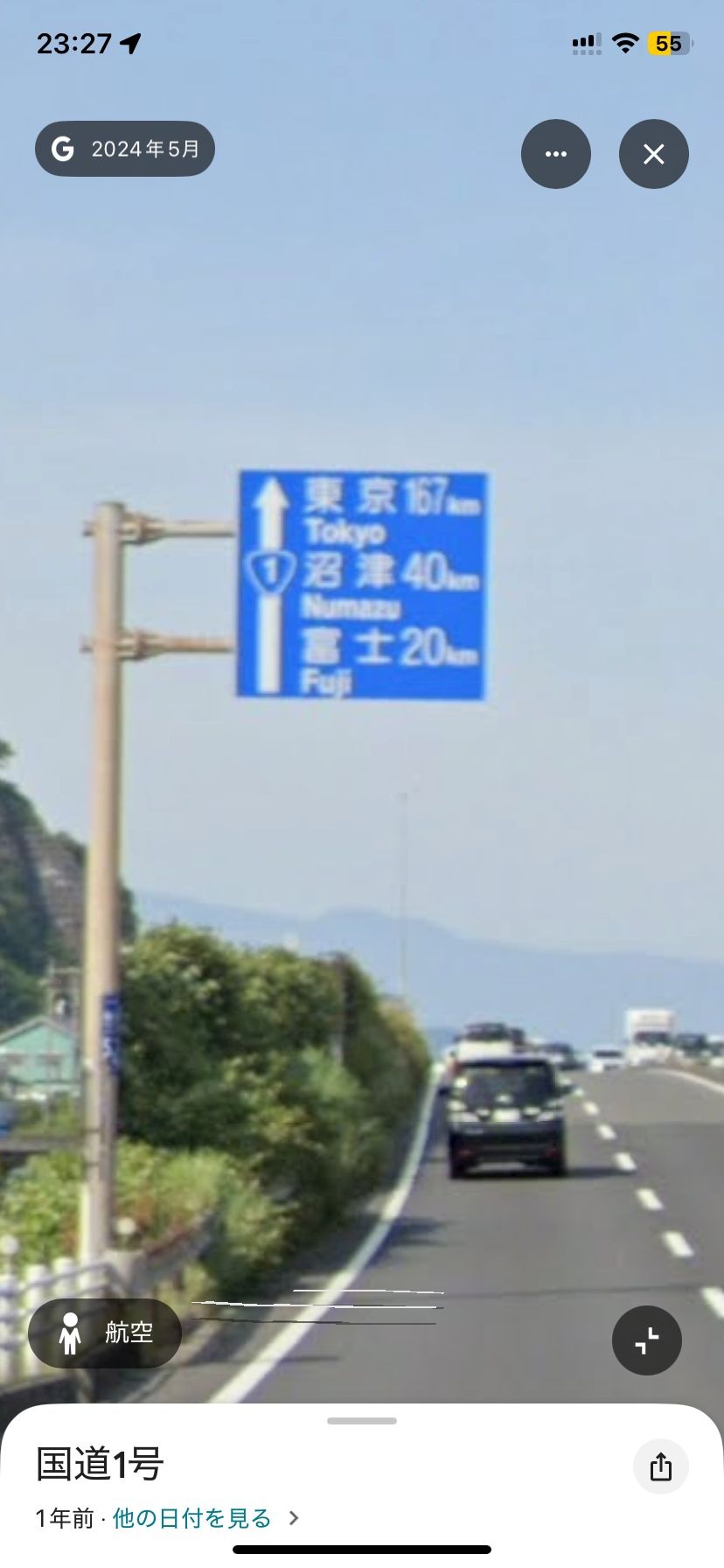 逆の静岡側からだと神奈川の県庁所在地の横浜までの距離が表示されない