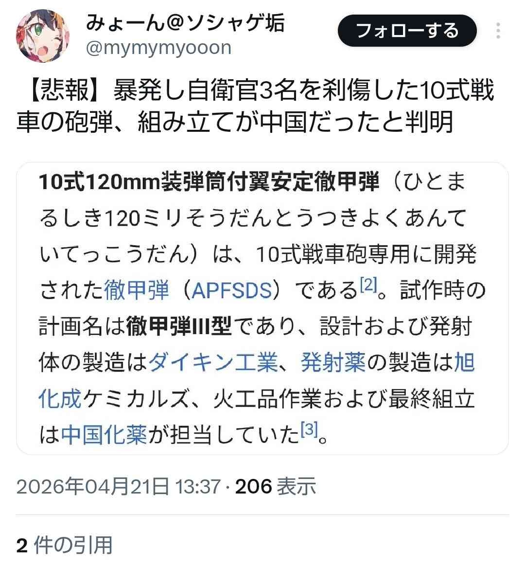 自衛隊の暴発した砲弾、やはり中国製だった…