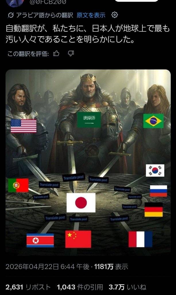 「自動翻訳が、日本人が地球上で最も汚くて気持ち悪い民族であることを明らかにした」1181万バズwww