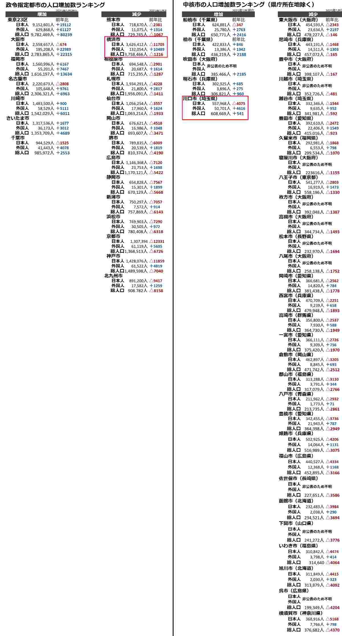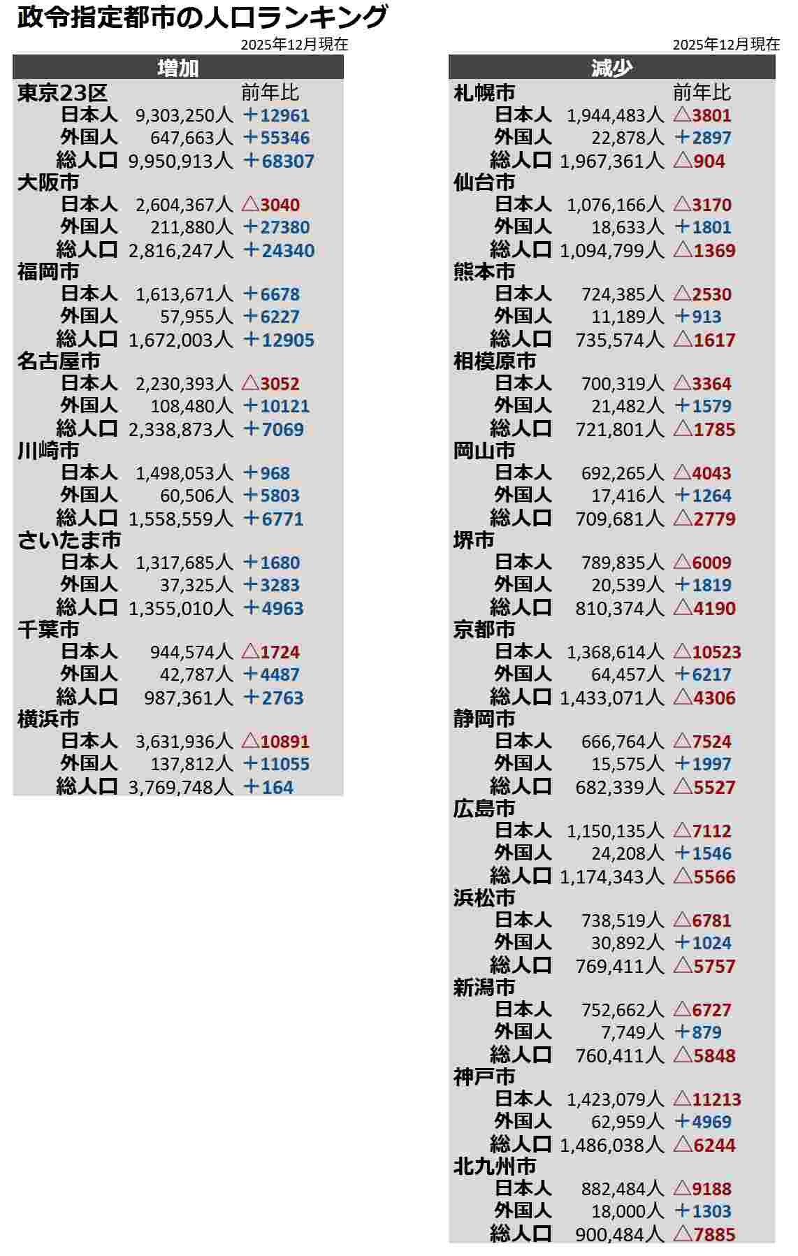 外国人より日本人が増えてるの福岡市だけなんだな。