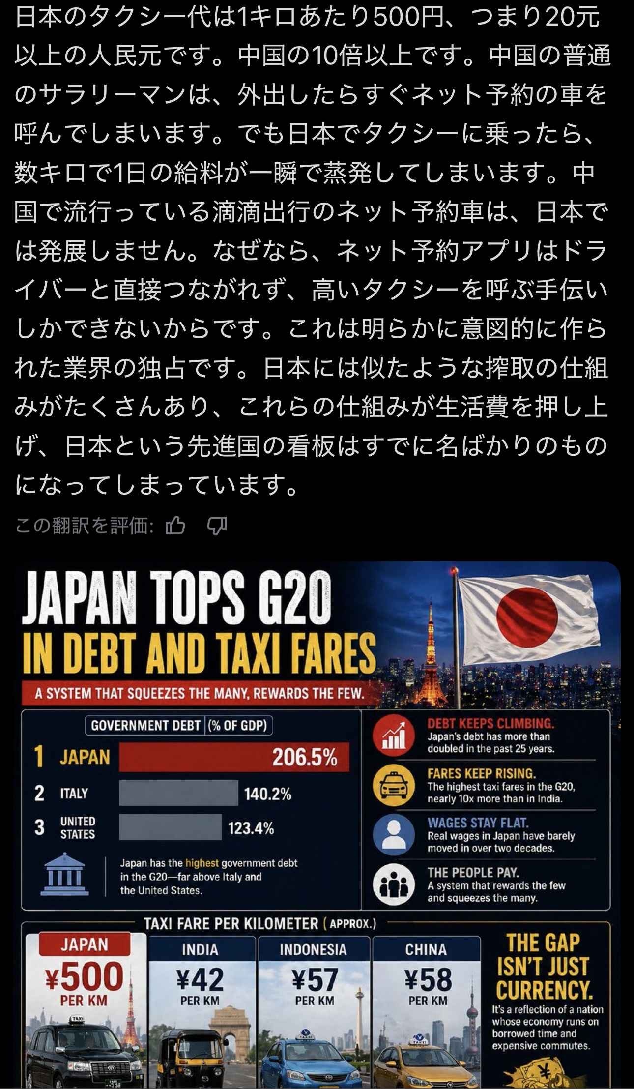 日本のタクシーはむしろ安いだろ