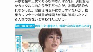 嫌儲 麻原彰晃の娘、韓国に行こうとするも入国拒否されてしまう…
