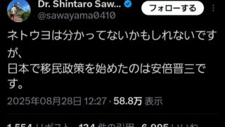 嫌儲 普通の日本人は分かってないかもしれないですが、日本で移民政策を始めたのはアベシンゾウです。