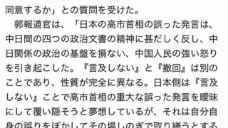 嫌儲 中国「日本は高市発言を”言及しない”ことで誤魔化そうとしてるが、所詮その場しのぎの言い訳」