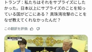 VIP トランプ「真珠湾攻撃のときみたいにサプライズしたかったんだHAHA」高市「」