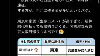 嫌儲 【万バズ】X「オタ活するなら、実は東京より名古屋が一番コスパいい」1万いいね5000RT
